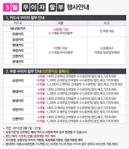 2015년 3월 무이자 할부 행사안내