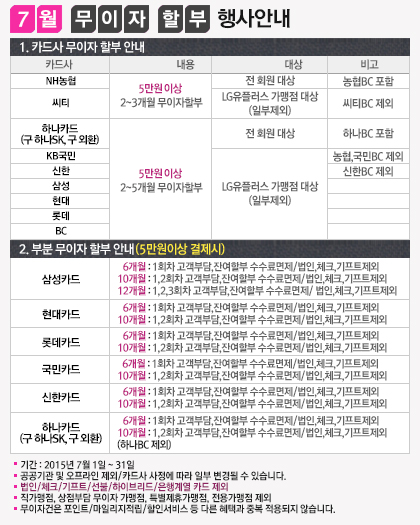 2015년 7월 무이자 할부 행사안내